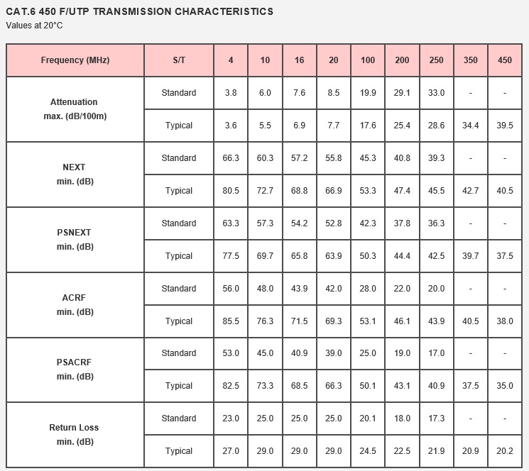 Cat 6 450 F-UTP TRANSMISSION CHARACTERISTICS